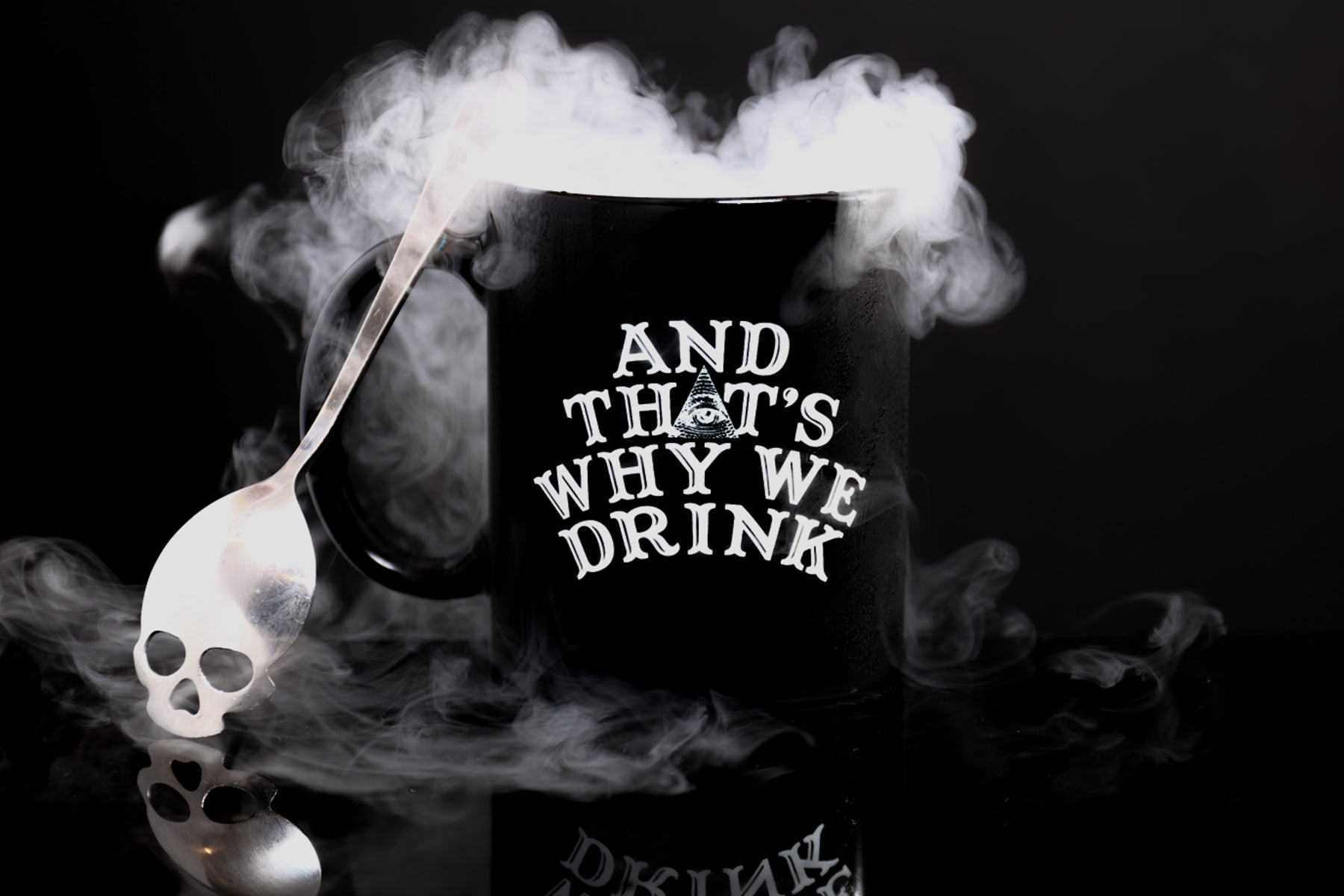 The Logo featured on a standard black coffee mug.