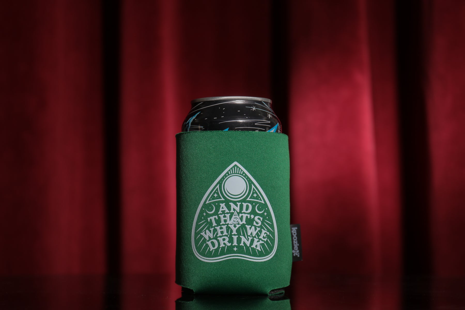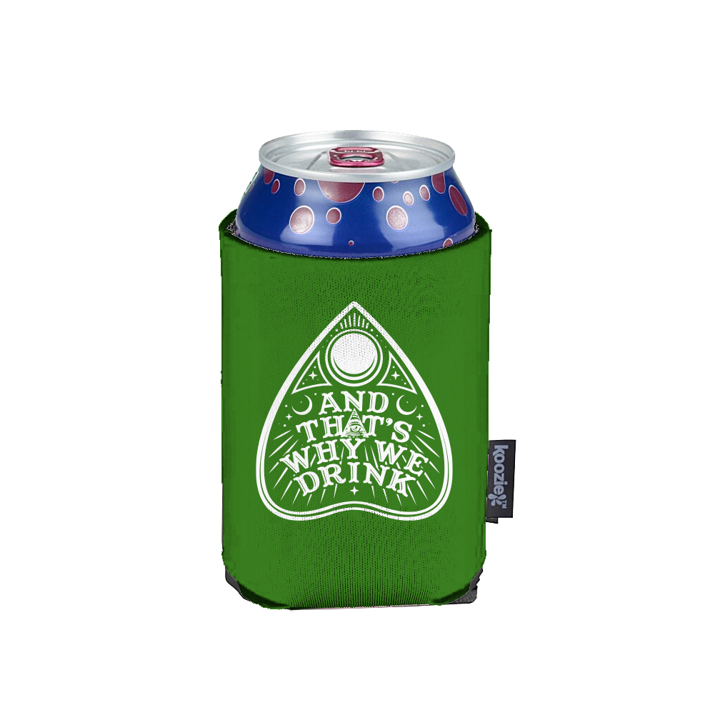 Keep your beverage cold and your hands dry with the planchette green coozie.