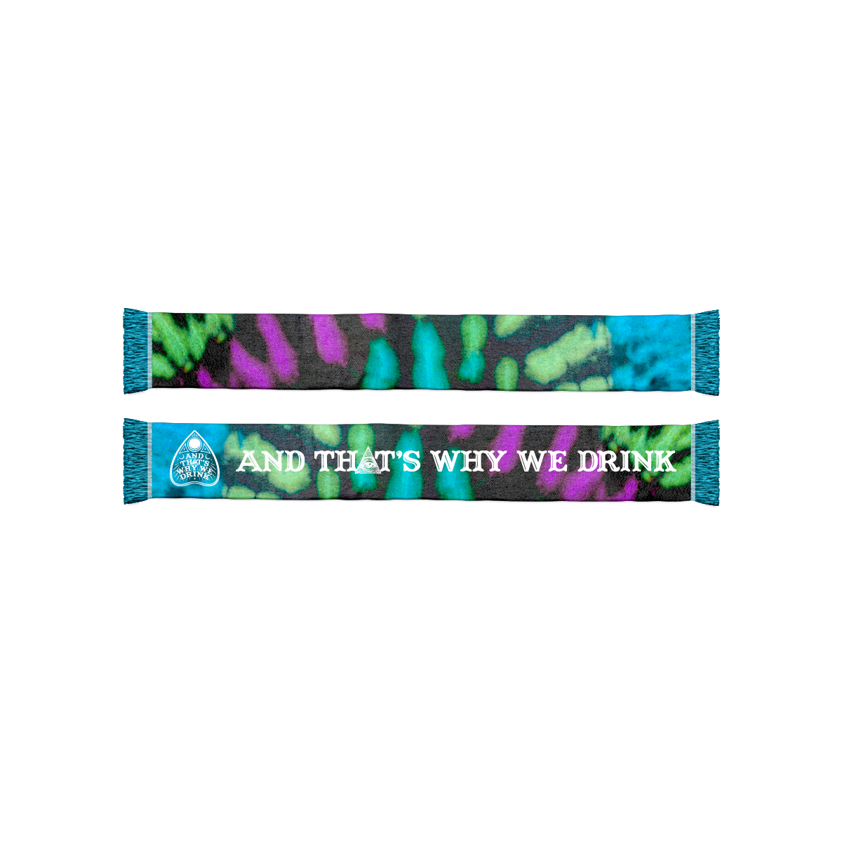The And That's Why We Drink Planchette and Logo design is featured on this soft, warm poltergeist dyed scarf.