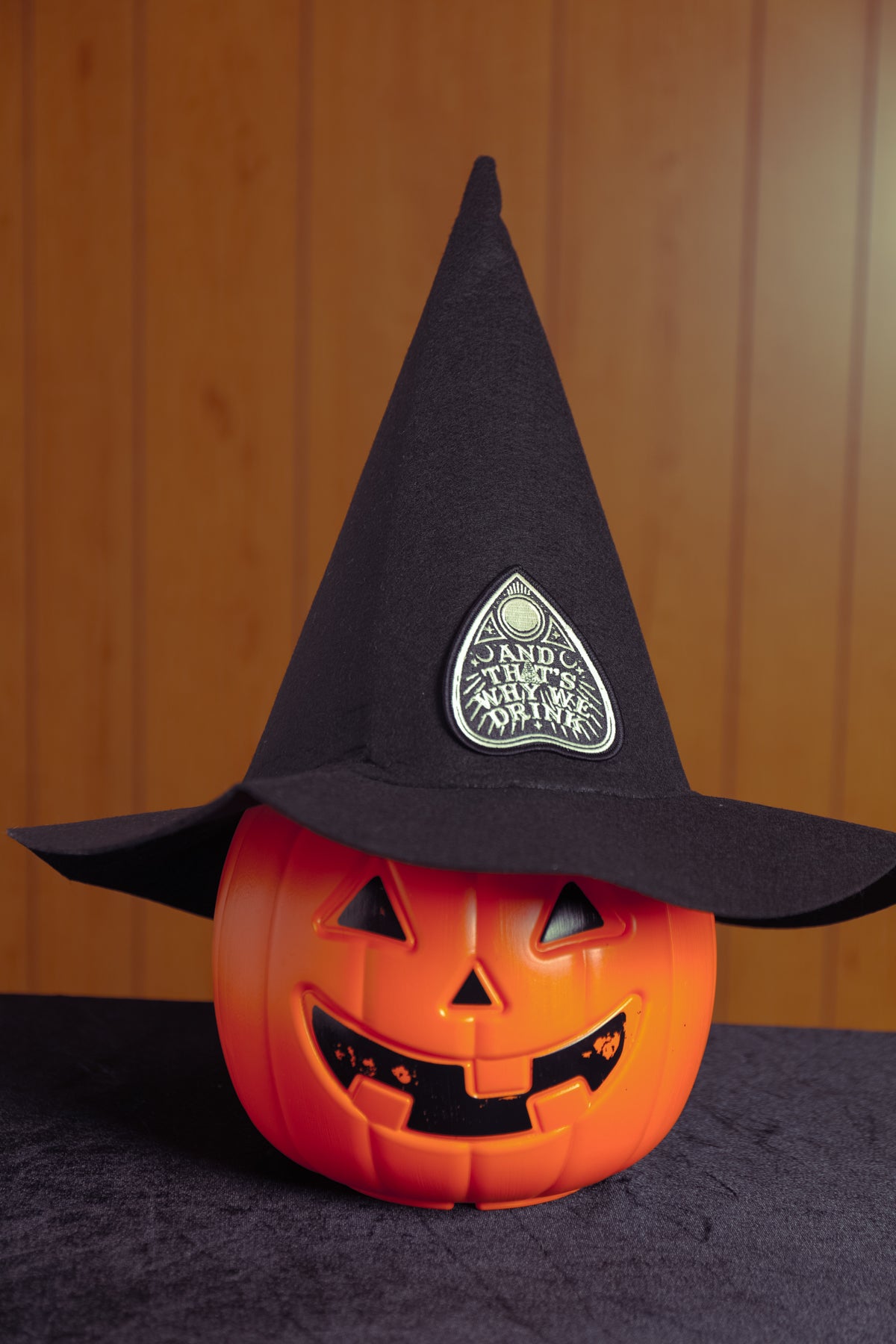 A black witches hat featuring the Planchette Logo sewn on the front.